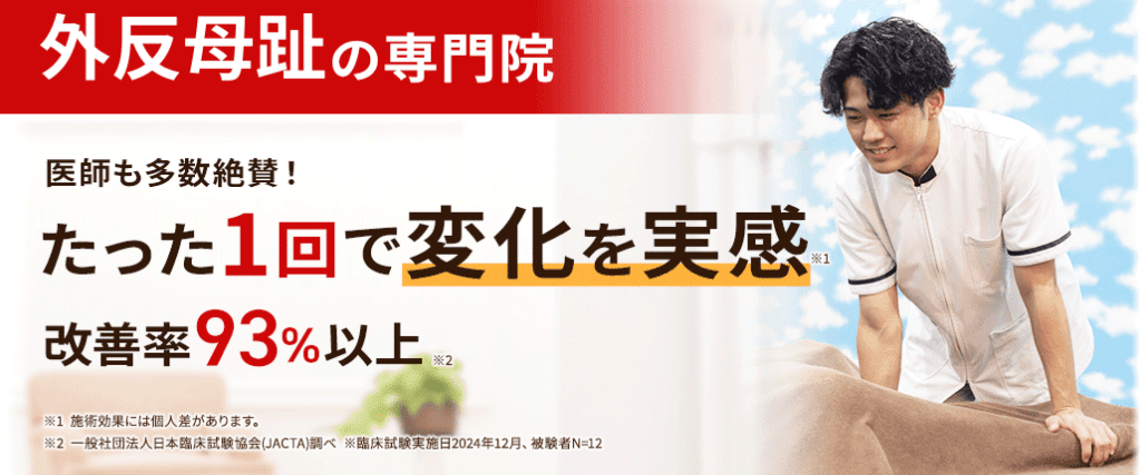外反母趾は「親指の変形」のイメージが強い一方で、つらいのは見た目よりも歩くたびに出る痛みや、靴のたびに起こる摩擦・炎症です。さらに痛みをかばって歩き方が崩れると、足だけでなく膝や腰にも負担が広がりやすくなります。